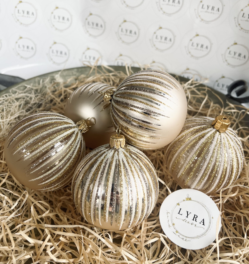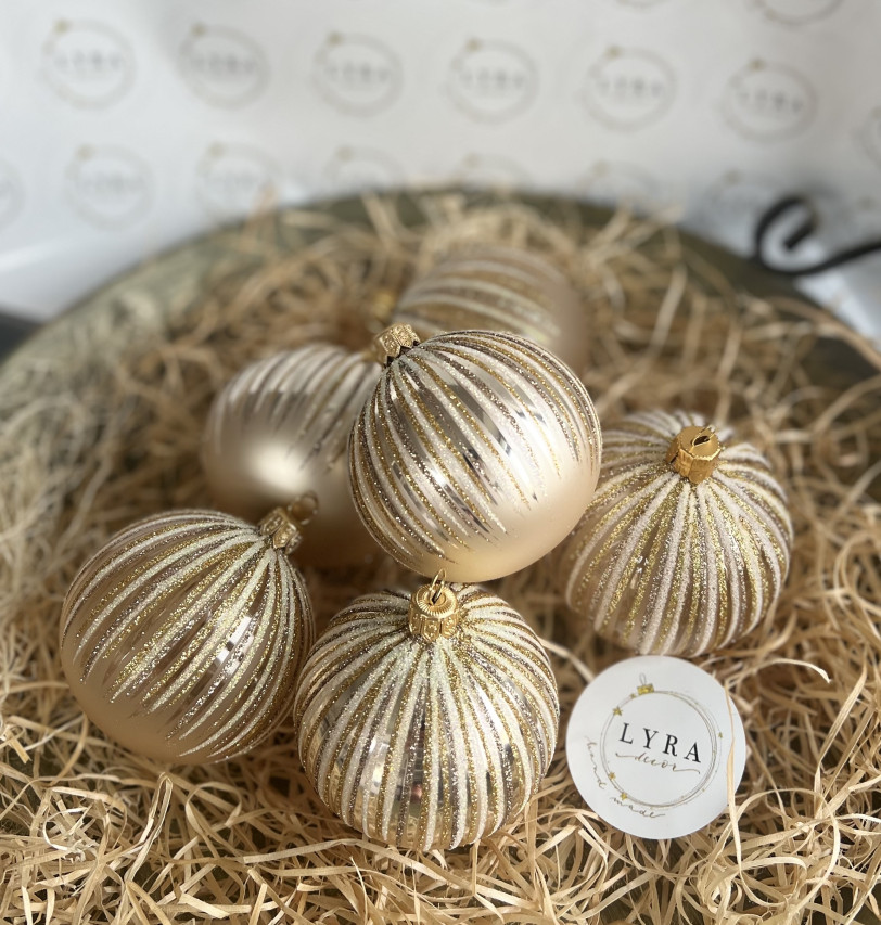 | sada po 6ks | Ide o 7cm veľkú, sklenenú ozdobu. Súprava obsahuje 6 ks. |