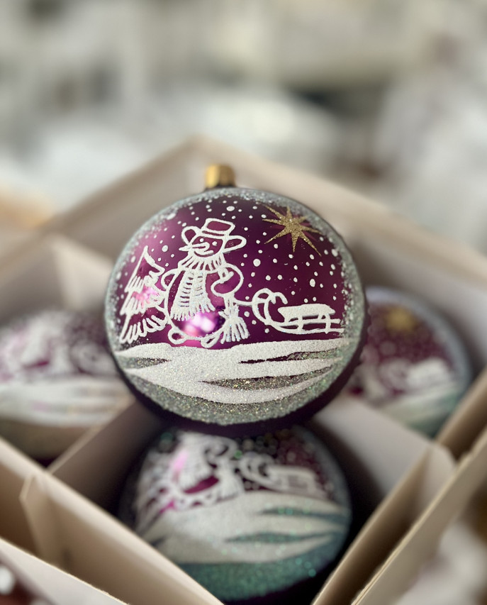 Štítky: s menom, guľa, 10cm, Snehuliak, tmavo fialová, ozdoby s menom