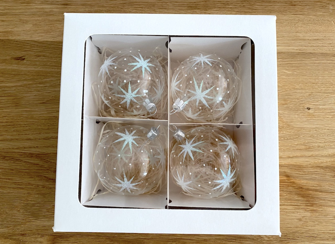 sada po 4ks Ide o 10cm veľkú, sklenenú ozdobu. Súprava obsahuje 4 ks.