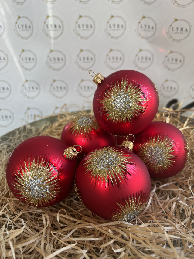 | sada po 6ks | Ide o 7cm veľkú, sklenenú ozdobu. Súprava obsahuje 6 ks. |