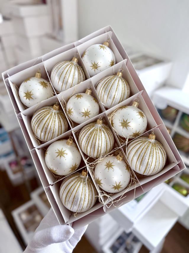sada po 6ks Ide o 7cm veľkú, sklenenú ozdobu. Súprava obsahuje 6 ks.