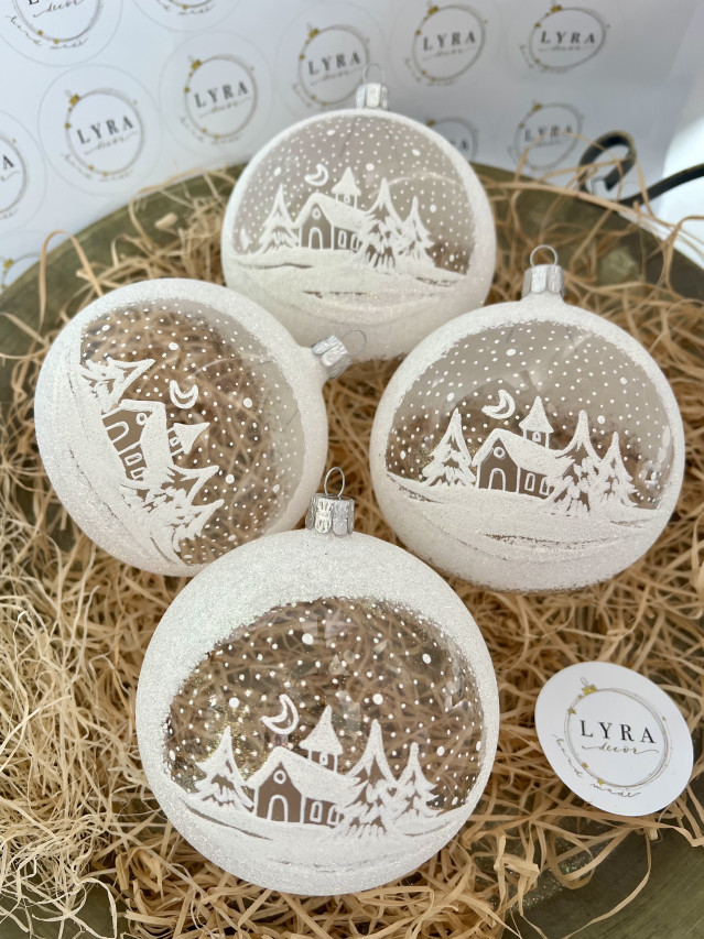 Nádherné sklenené ozdoby s motívom kostolíka pripomínajú nejednému z nás krásne zimy plné snehu z detstva. Nežný motív navodí príjemnú sviatočnú atmostéfu.